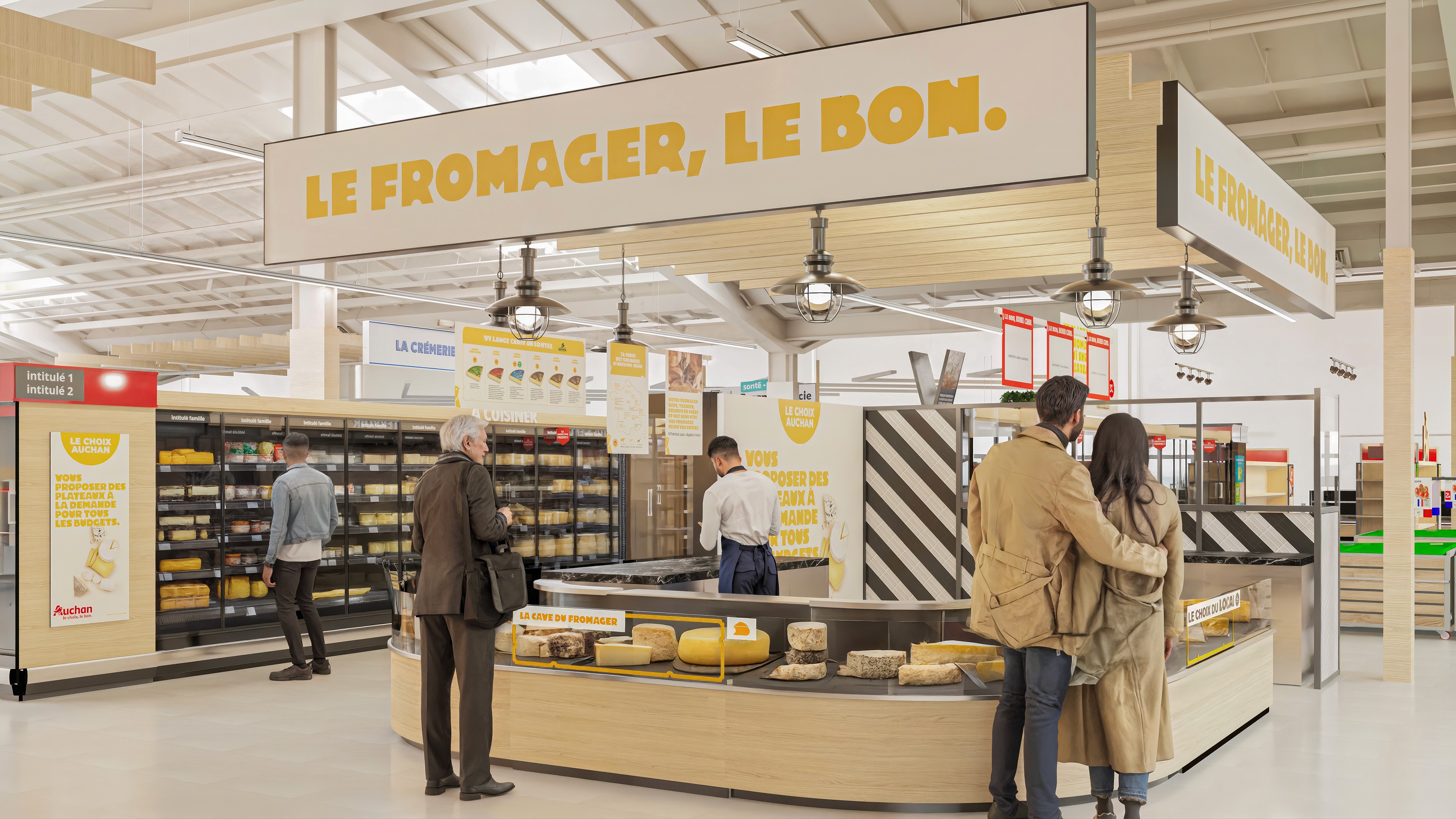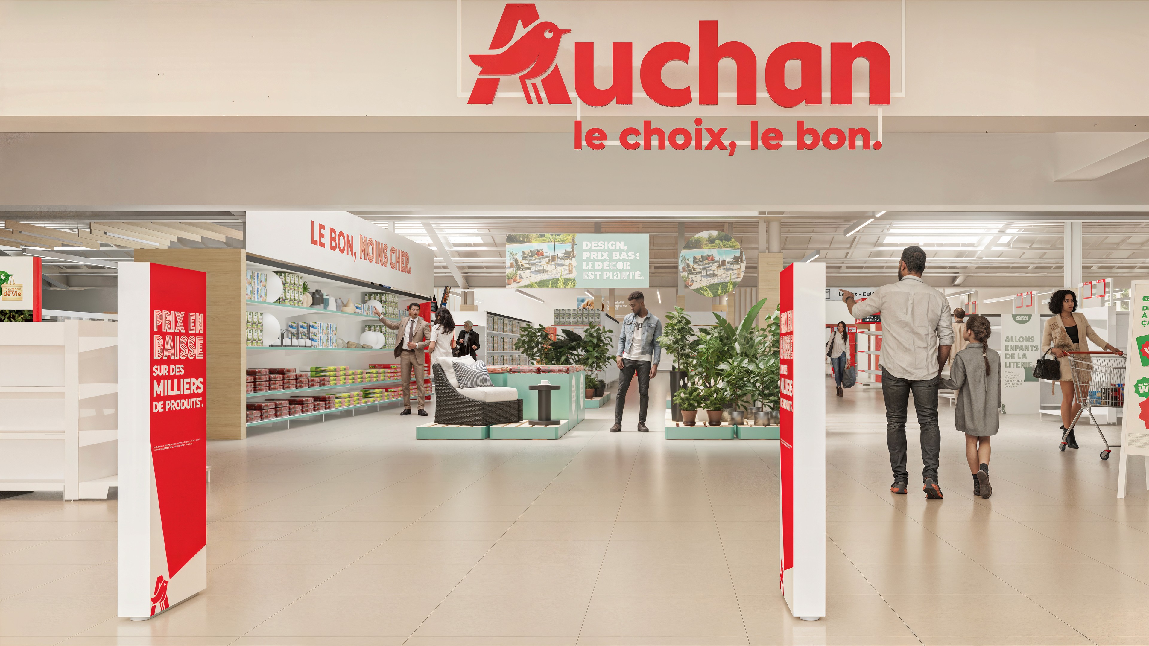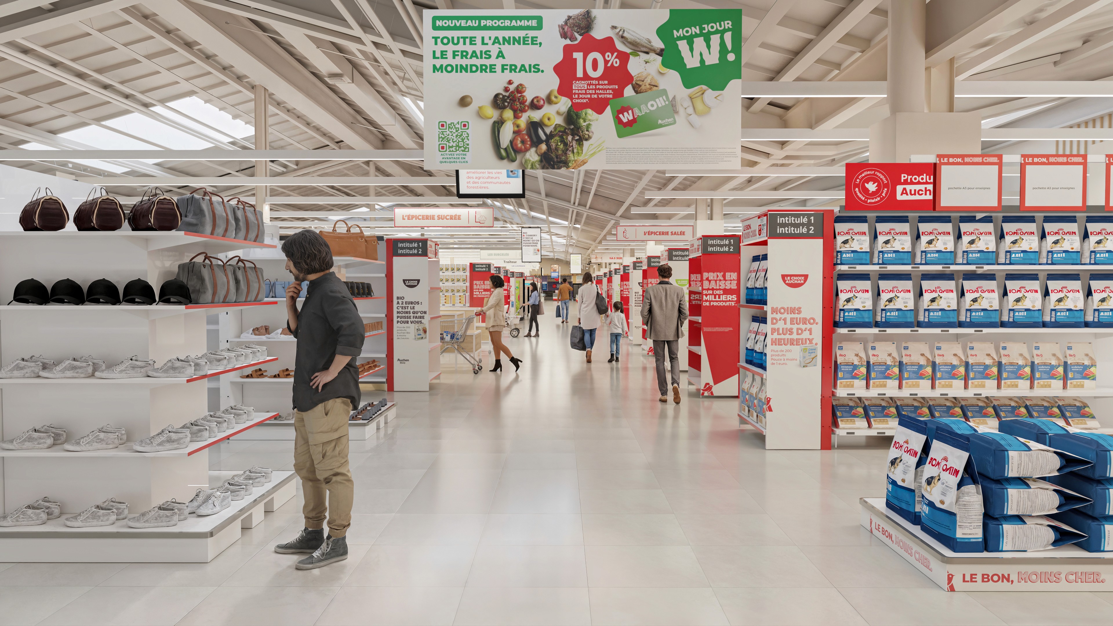 Dans le cadre d’un projet de visualisation pour Auchan, j’ai réalisé une série de rendus photoréalistes illustrant leur nouveau concept de magasin. L’objectif était de traduire visuellement l’identité et l’ambiance des futurs espaces.