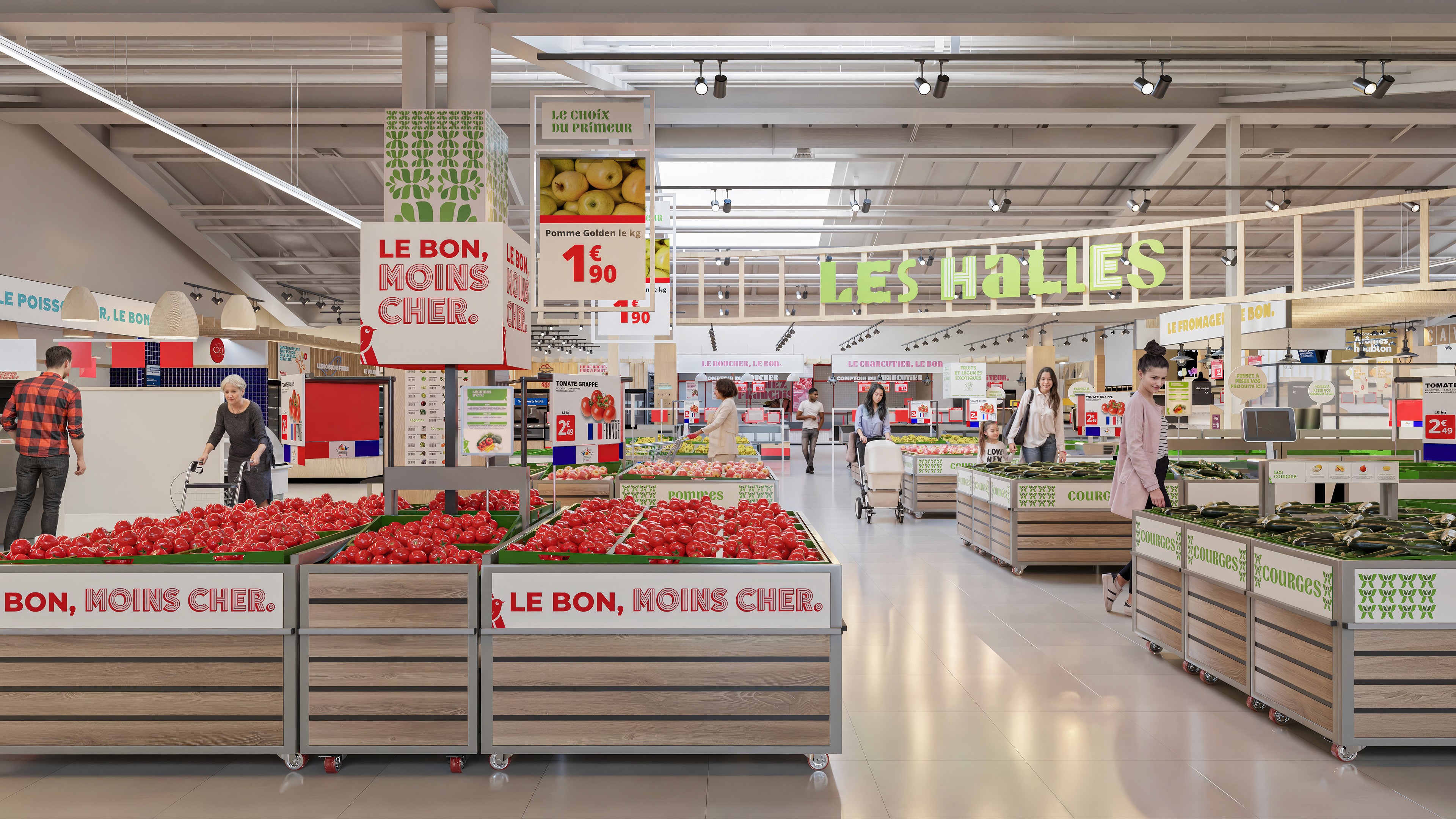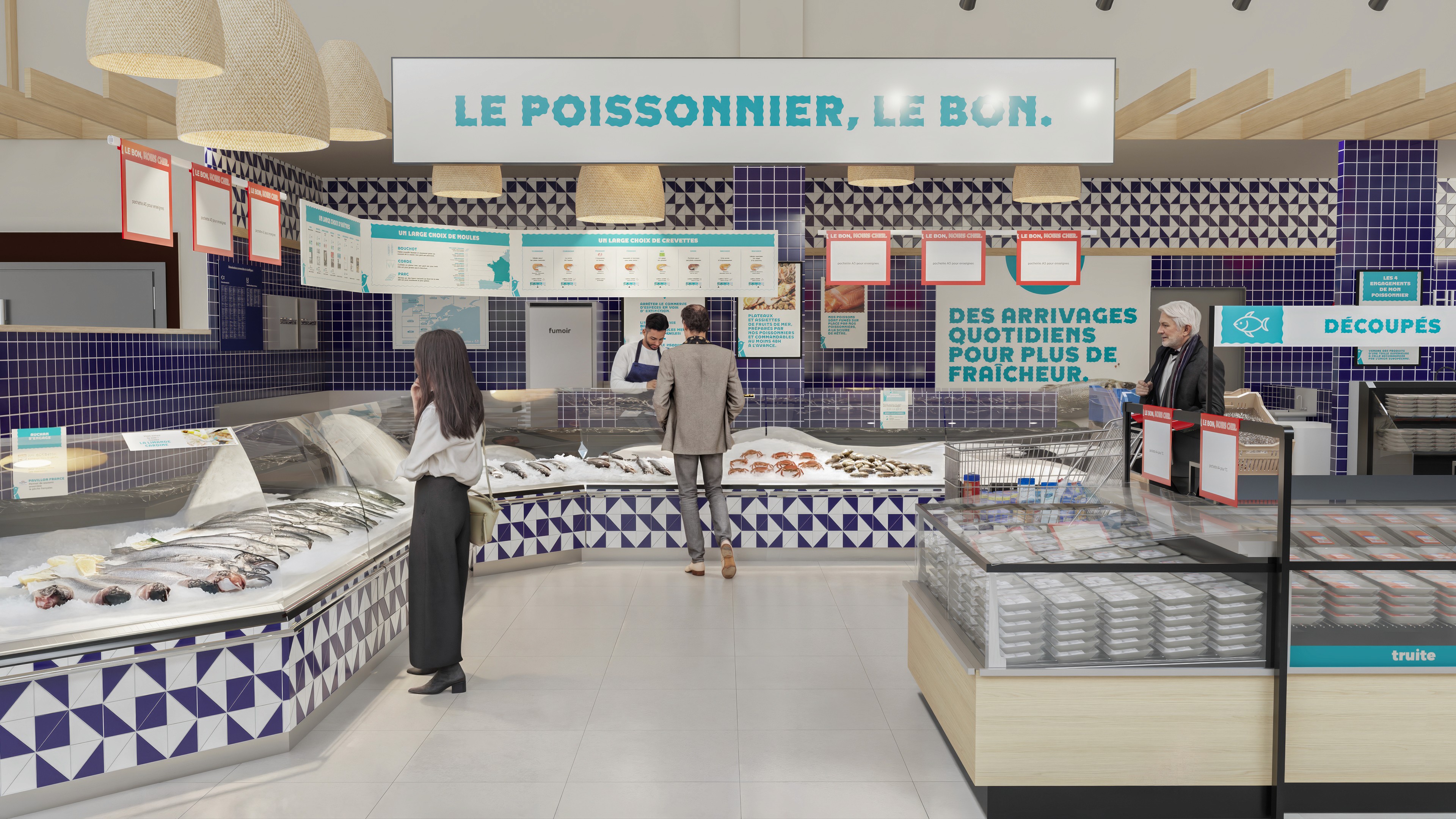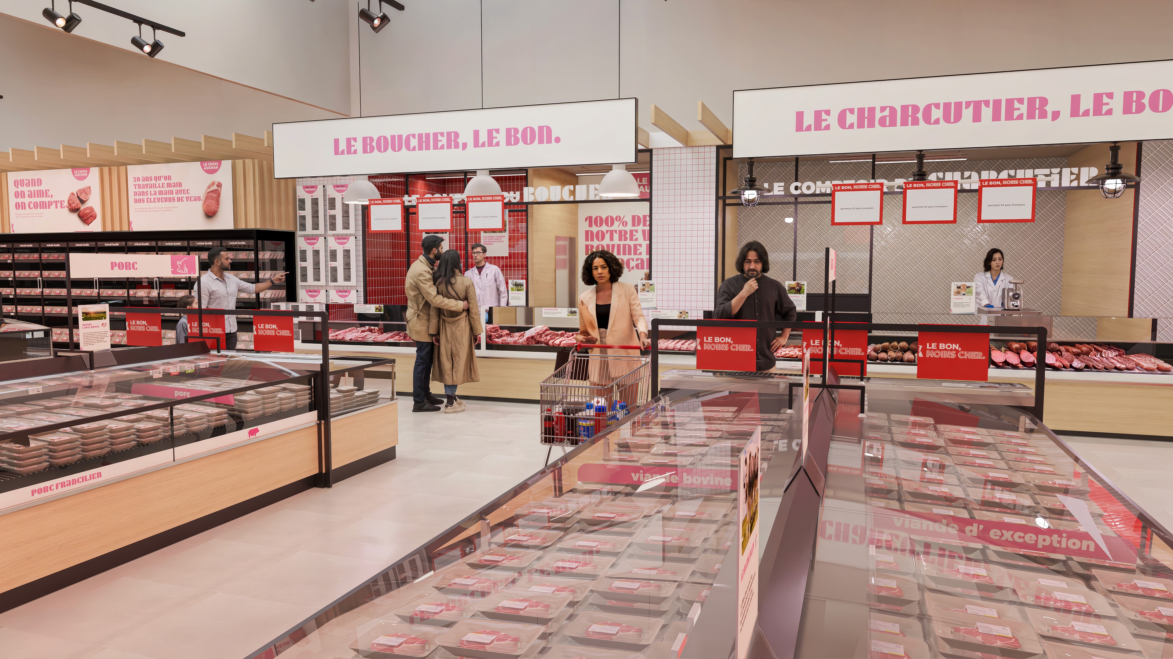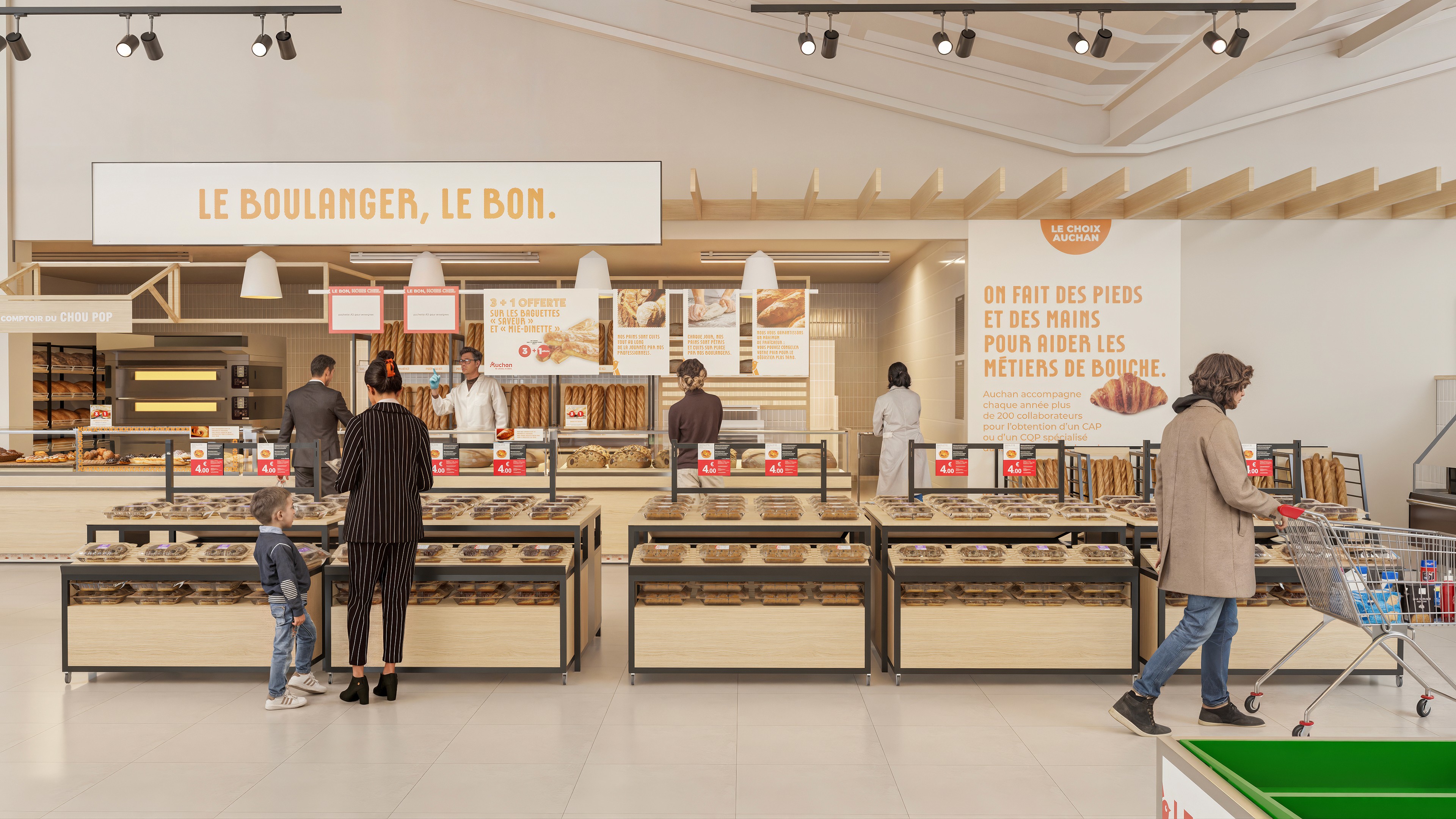 Dans le cadre d’un projet de visualisation pour Auchan, j’ai réalisé une série de rendus photoréalistes illustrant leur nouveau concept de magasin. L’objectif était de traduire visuellement l’identité et l’ambiance des futurs espaces.